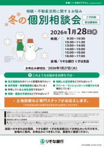 2026年1月28日(水) りそな銀行 くずは支店において、個別相談会を開催いたします。